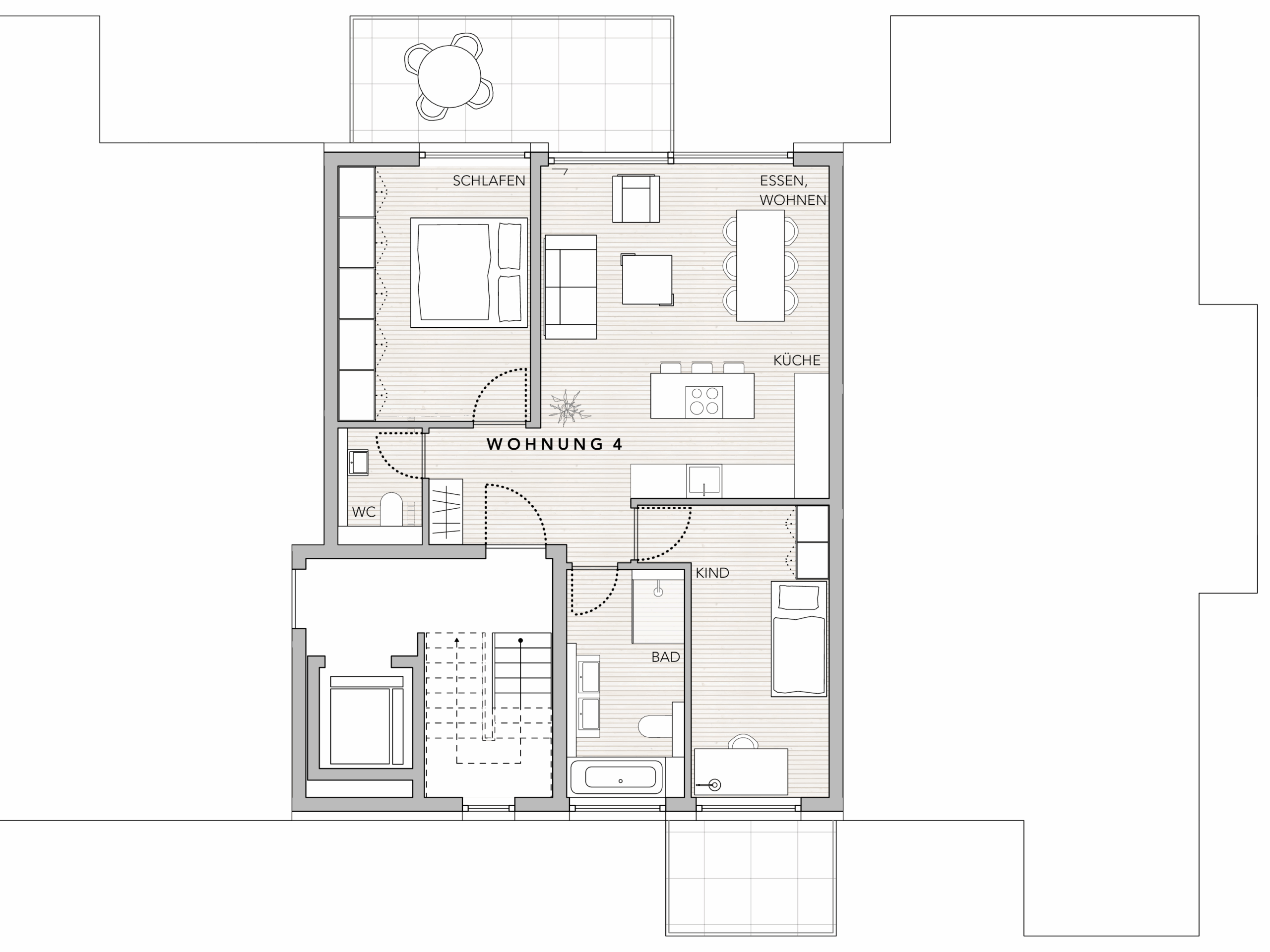 Diese 3,5-Zimmer-Wohnung überzeugt mit einem offenen Wohn-, Ess- und Küchenbereich, der viel Licht und Großzügigkeit bietet. Zwei Balkone nach Osten und Westen erweitern den Wohnraum und schaffen angenehme Aufenthaltsbereiche im Freien. Ein zeitloses Bad mit hochwertiger Ausstattung sowie ein zusätzliches Gäste-WC sorgen für hohen Wohnkomfort im Alltag.