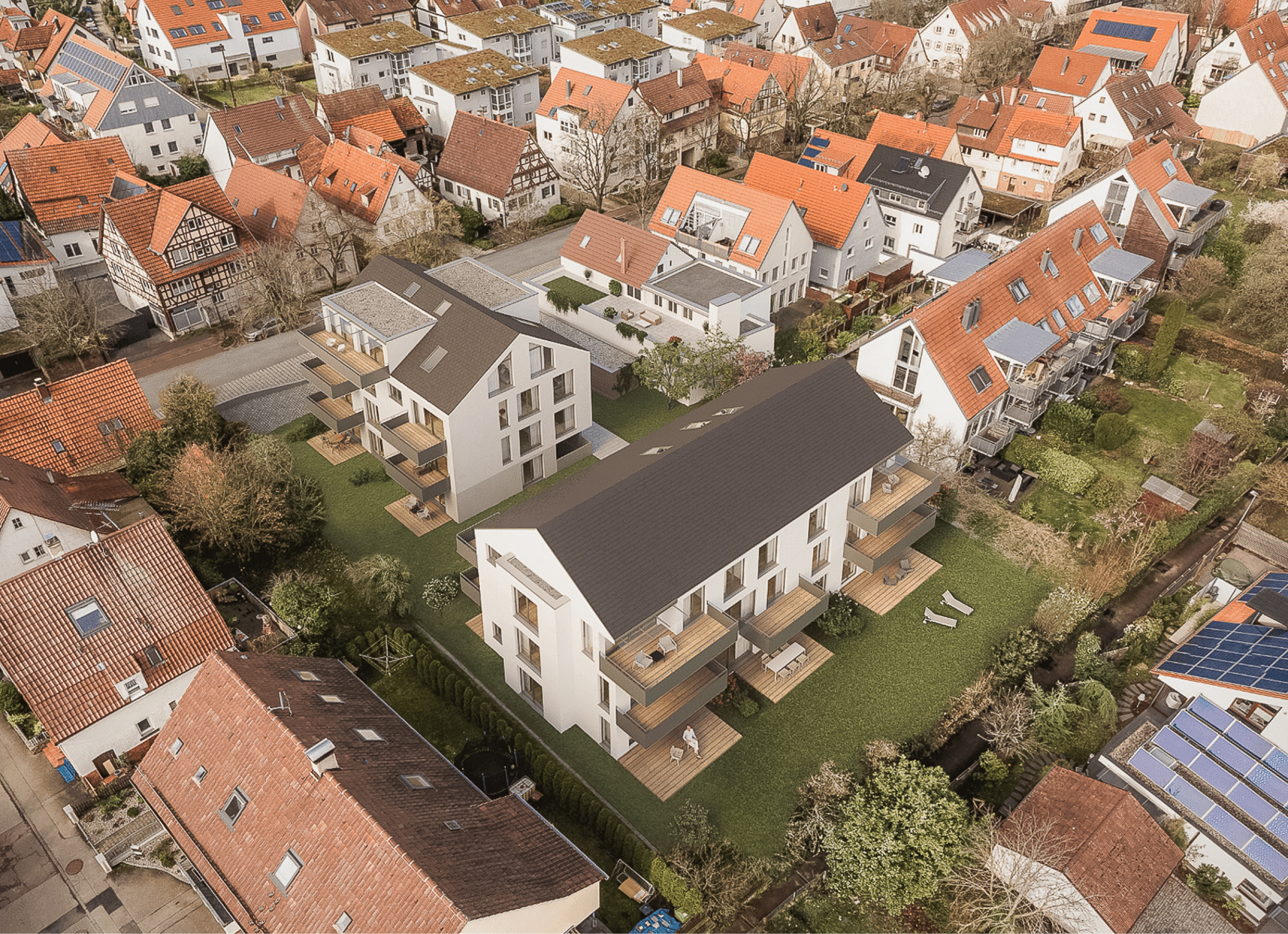 Im oberen Teil der Hauptstraße, zentrumsnah in Gerlingen, realisieren wir zwei exklusive Mehrfamilienhäuser mit insgesamt 13 modernen Wohnungen. Die Innenstadt ist in wenigen Gehminuten über die Hauptstraße oder den historischen Etterweg erreichbar. Dieses innovativeWohnprojekt vereint zeitgemäße Architektur mit maximaler Sonnenenergienutzung.